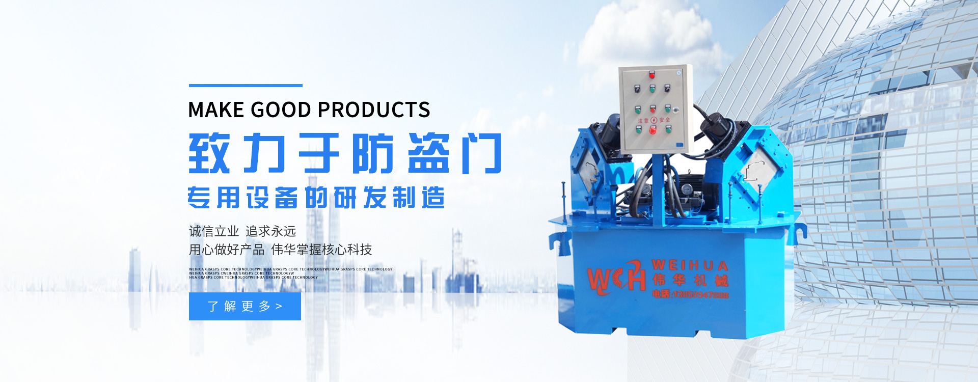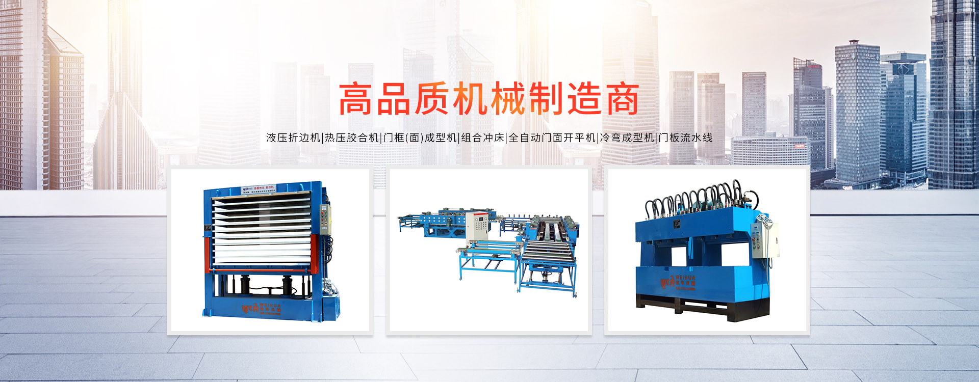 更多>溫州偉華機械制造有限公司地處浙江溫州瑞安市塘下工業(yè)區(qū),創(chuàng)建于2009年,數(shù)年來全心致力于防盜門專用設備的研發(fā)制造,主營產品有:門面成型機、門框成型機、熱壓膠合機、組合沖床、液壓折邊機、雙頭沖床、門面開平機。現(xiàn)已具備獨特的管理模式和產品開發(fā)能力,歷經多年的努力,現(xiàn)已發(fā)展成為國內最具影響力的機械設備企業(yè)之一。